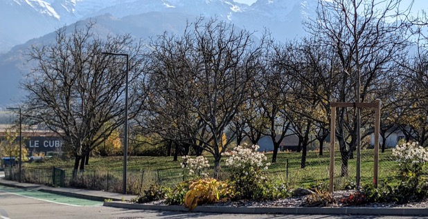 Projet de la Noyeraie - Champs de noyers en dessous de l’école Riverains attenants au champ de noyers en dessous de l’école, nous avons été contacté par le promoteur Cogedim pour la présentation d’un projet de construction d’immeubles. Il s’agit d’un projet similaire à celui des Michelières (zone UBd sur le PLU), ce qui représente entre 40 et 50 logements collectifs, le double en place de parking, plus des places extérieures pour les visiteurs.